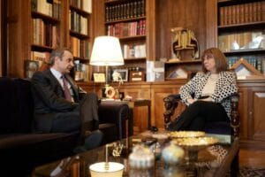 Ο πρωθυπουργός Κυριάκος Μητσοτάκης συναντήθηκε με την Πρόεδρο της Δημοκρατίας Κατερίνα Σακελλαροπούλου στο Προεδρικό Μέγαρο, στο πλαίσιο...