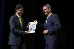 Ο Κυριάκος Μητσοτάκης, μαζί με τον Καναδό ομόλογό του Τζάστιν Τριντό, έλαβε μέρος σε εκδήλωση της Ελληνικής...