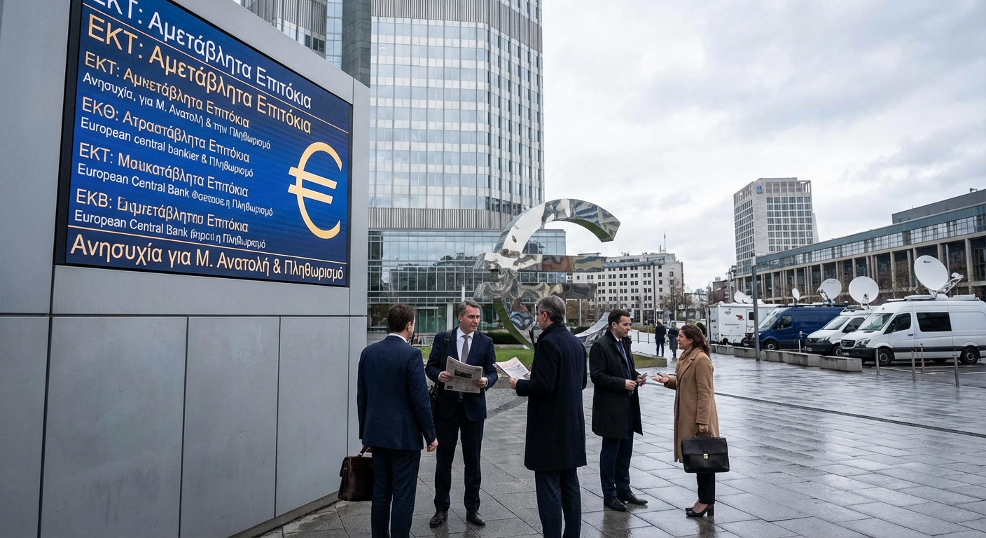 Το Διοικητικό Συμβούλιο της Ευρωπαϊκής Κεντρικής Τράπεζας (ΕΚΤ) προέβη σε μία αναμενόμενη απόφαση, διατηρώντας αμετάβλητα τα τρία βασικά επιτόκια της νομισματικής πολιτικής. Συγκεκριμένα, τα επιτόκια για τη διευκόλυνση αποδοχής καταθέσεων, τις πράξεις κύριας αναχρηματοδότησης και τη διευκόλυνση της οριακής χρηματοδότησης παραμένουν σταθερά. Αυτή η στάση αντικατοπτρίζει μία προσεκτική προσέγγιση από την κεντρική τράπεζα, καθώς αξιολογεί τις τρέχουσες οικονομικές συνθήκες και τις προοπτικές για την ευρωζώνη. Η απόφαση αυτή λαμβάνεται σε μία περίοδο αυξημένης γεωπολιτικής αβεβαιότητας, με τις εξελίξεις στη Μέση Ανατολή να αποτελούν κύρια πηγή ανησυχίας για το οικονομικό επιτελείο της ΕΚΤ. Οι αναλυτές εκτιμούν ότι οι αυξημένες εντάσεις στην εν λόγω περιοχή θα μπορούσαν να επιφέρουν απρόβλεπτες αναταράξεις στις παγκόσμιες αγορές, ιδίως σε σχέση με την ενέργεια και τις εφοδιαστικές αλυσίδες.