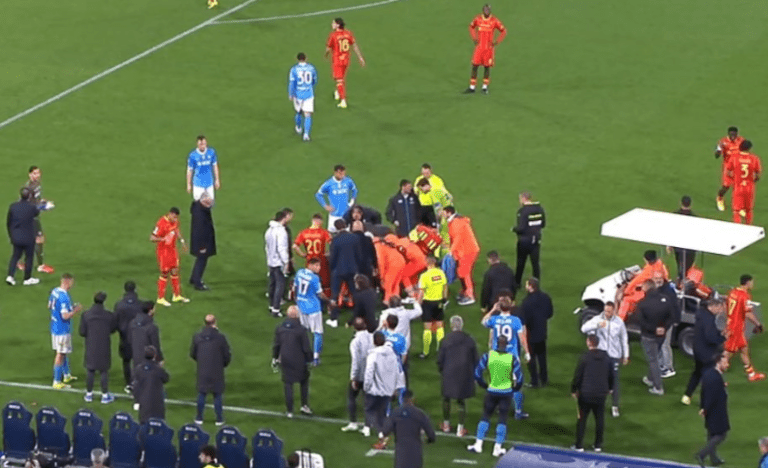 😨Attimi di apprensione al ‘Maradona’, improvvisamente calato nel silenzio… Banda si accascia a terra e si tocca il petto, subito l’intervento dello staff sanitario chiamato a gran voce dai calciatori in campo e dallo stesso Conte…
