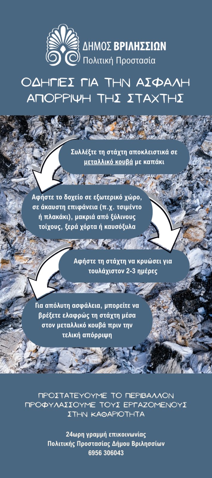 Οδηγίες για την ασφαλή απόρριψη της στάχτης στους κάδους απορριμμάτων