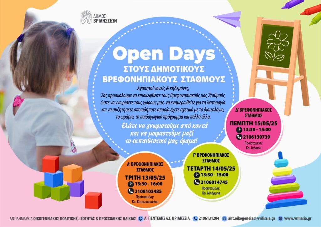 Open Days στους Δημοτικούς Βρεφονηπιακούς Σταθμούς Βριλησσίων