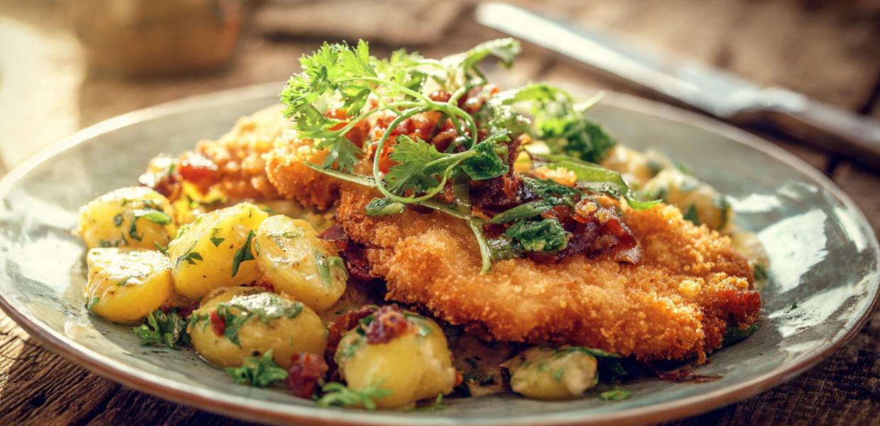 Το σνίτσελ κοτόπουλο αποτελεί μια διαχρονική επιλογή στην κουζίνα, αγαπητό σε όλες τις ηλικίες για την ακαταμάχητη υφή και τη γεύση του. Η μαγεία του έγκειται στην ικανότητά του να συνδυάζει την αφράτη εσωτερική του σύσταση με μια λαχταριστή, τραγανή κρούστα, μετατρέποντας ένα απλό πιάτο κοτόπουλου σε μια γευστική εμπειρία. Η προετοιμασία του είναι σχετικά απλή, καθιστώντας το ιδανικό για ένα γρήγορο αλλά και εντυπωσιακό γεύμα. Κάθε μπουκιά υπόσχεται μια έκρηξη γεύσης, με το τρυφερό κοτόπουλο να συμπληρώνεται από την τραγανή επικάλυψη, δημιουργώντας μια αρμονία που ικανοποιεί τον ουρανίσκο. Η ευελιξία του σνίτσελ επιτρέπει άπειρους συνδυασμούς, αλλά σήμερα εστιάζουμε στο πλέον κλασικό και αγαπημένο του ταίρι. Για να συμπληρώσετε τέλεια αυτό το δημοφιλές πιάτο, η γερμανική πατατοσαλάτα ξεχωρίζει ως η υπέρτατη επιλογή.